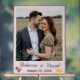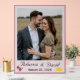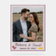 Design features a pale-pink background to the photo you supply which is displayed as main image. Names of bride and groom are featured below in an elegant Nuptial font. Date is displayed at bottom in print. The images of the Sacred and Immaculate Hearts of Jesus and Mary grace the bottom left corner, while the image of joined wedding rings is displayed in bottom right corner. Entire design is framed by an elegant dusty-rose colored border. Designed to coordinate with the "Two Hearts Catholic Wedding Suite (Dusty Rose)" collection. Available in a variety of colors.