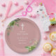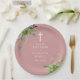 Dusty Rose Pink Greenery Baptism Christening Paper Plate