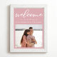 This dusty rose pink wedding welcome poster with your couple engagement photo features delicate white typography for a romantic afternoon ceremony for a feminine bride who likes soft colours and minimal script design. Soft pastel pink decor.