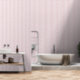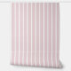 A dusty rose pink and white two inch wide butcher stripe wallpaper.