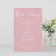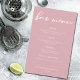 This dusty rose pink wedding bar menu sheet features delicate white typography for a romantic afternoon ceremony for a feminine bride who likes soft colours and minimal script design. Soft pastel pink drinks sign.