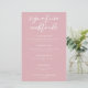 This dusty rose pink wedding signature cocktails menu features delicate white typography for a romantic afternoon ceremony for a feminine bride who likes soft colours and minimal script design. Soft pastel pink drinks list.