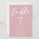This dusty rose pink wedding table number card features delicate white typography of your guests names for a romantic afternoon ceremony for a feminine bride who likes soft colours and minimal script design. Soft pastel pink cards that match your seating chart.