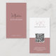 Boho Chic Dusty Rose Pink Calligraphy Script qr code modern minimalist Business Card. Personalise the monogram, script and details of this clean,simple feminine typography. Ideal for interior designers, event planner, wedding planners, consultants, makeup artist and beauty salons. A perfect card for your business!