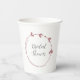 Add elegance to your wedding shower event with these white paper cups that feature a trendy, dusty rose colour, simple heart wreath design with the future bride and groom's names printed in grey, stylised script on one side of cup. Edit and replace initials with your own.