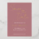 Simple, gold foil print wedding Save the Date card with white, stylised script on dusty rose colour background. Edit names, date and location with your own wedding information. Change foil colour if desired. Background colour may be changed as well to match your wedding colour scheme.