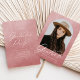 Elegant graduation party invitations featuring the graduate's photo inside of an arch frame with a dusty rose watercolor background. "Graduate" is displayed in a white modern calligraphy script with the graduate's name, school, and grad year shown below. The back of the photo graduation party invitation features your graduation party details with a dusty rose watercolor background.