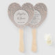 The fans are very pretty and easy to assemble. We utilized the original template and just inserted the names of our wedding party. After the product arrived we noted they read,”Made of Honor” rather than “Maid of Honor”. Upon re-checking the website we noticed the typo is in the original template and was not a mistake on our end. It is too late to return because our wedding is in just a few days but if we had time we would certainly request an exchange. See review above regarding typo.