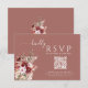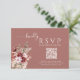 Modern dusty rosewood and burgundy blush floral RSVP card featuring a scannable QR code — a stylish way for guests to reply instantly online.