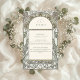A beautifully ornate wedding details card designed in the timeless Art Nouveau style. Featuring flowing botanical borders, golden floral accents, and a deep green background, this card is perfect for sharing reception info, gift notes, and special requests. Sophisticated and elegant, it complements a classic or vintage wedding suite.