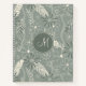 This pretty floral spiral notebook features a pattern of hand-drawn feathers, flowers and paislies in cream on a dusty sage background with darker sage accents - personalise with her monogram - by katz_d_zynes