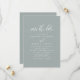 This minimalist save the date card features beautiful dusty sage green hues paired with elegant calligraphy script. With a modern and simple design, this versatile card is perfect for any season - spring, summer, winter, or fall. It exudes a classy and stylish vibe, perfect for a romantic, chic, or sophisticated wedding theme.