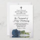 Dusty Steel Blue Rose Chic Modern Catholic Wedding Invitation