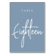 Simple and chic table number cards in Dusty Blue and white make an elegant statement at your wedding or event. Design features "table [number]" in an eyecatching mix of classic serif and handwritten script lettering. Design repeats on both sides. Individually numbered cards sold separately; order each table number individually from our collection.
