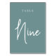 Dusty Teal Hand Scripted Table NINE Table Number