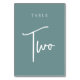 Simple and chic table number cards in dusty teal aqua and white make an elegant statement at your wedding or event. Design features "table [number]" in an eyecatching mix of classic serif and handwritten script lettering. Design repeats on both sides. Individually numbered cards sold separately; order each table number individually from our collection.