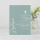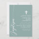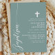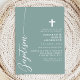 Celebrate the sacred occasion of a baptism with this elegant dusty teal invitation. Featuring a minimalist design with modern script and a delicate cross, this invitation is perfect for inviting friends and family to join in this special event. The soft colour and simple, clean lines add a touch of sophistication and grace, making it ideal for such a meaningful celebration. Customise the details to create a unique and memorable invitation for your child's baptism.