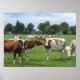 Curious Dutch Dairy Cows Landscape Photo Poster Print with Curious Cows Looking directly into the Camera at You and Cows Eating Grass in a Green Rural Dutch Polder Meadow Landscape with in the Background a Farm and Trees on a Beautiful Summer's Day Photo Poster Gift. Fully Customisable! Add Your own Text and Images if You want! Beautiful and Nostalgic Farm Animal in Nature Gifts for the Rural Country Lovers and Dairy Cow Fans!