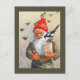 Gnome (Kabouter) feeds a flock of birds from his hand. Vintage 19th century artwork.