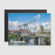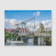 Painting of the street and traditional Dutch lifting wooden bridge in fishing village in Volendam, North Holland, Netherlands.