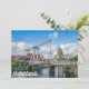 Painting of the street and traditional Dutch lifting wooden bridge in fishing village in Volendam, North Holland, Netherlands...