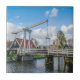 Painting of the street and traditional Dutch lifting wooden bridge in fishing village in Volendam, North Holland, Netherlands...