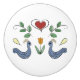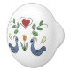 Ceramic knob with a Pennsylvania Dutch drawing with birds, a heart and a tulip. The background image can be changed