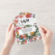 Dutch Master Floral all in one Wedding invitations that include the wedding info and RSVP postcard that your guests tear off and send. Envelopes are not needed. Features bright bold flowers.