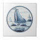 Dutch bathroom tile. Hollands tegeltje. Big sailboat and little church.