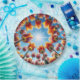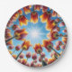 Sunlight bursts through a vibrant display of Dutch tulips, creating a mesmerising view from below