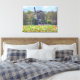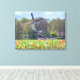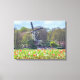 A beautiful view of a windmill and tulip fields in the Netherlands printed on a canvas.