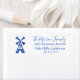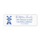 Dutch Delft Blue Windmill Ornament, return address labels. Customise font style, colour and size. Designed to match our Dutch Delft Blue Holiday Collection.