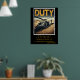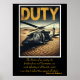 A military helicopter, bearing the scars of service, lies crashed and broken in a desolate, sandy landscape. Its rotor blades are shattered, and its machinery is exposed, a stark reminder of the realities of conflict. The arid desert stretches out under a clear, unforgiving sky, emphasizing the isolation and desolation. The word "Duty," written in a bold, elegant yellow cursive font, contrasts with the dark border framing the scene. The image emphasizes realism and detail, capturing the sombre aftermath of battle.! The liberties of our country, the freedom of our civil Constitution, are worth defending at all hazards; and it is our duty to defend them against all attacks." -Samuel Adams