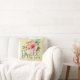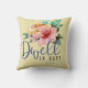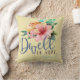 Pretty, inspiring throw pillow | "Dwell in hope." The basis of Psalms 16:9 bible verse accompanied with beautiful floral bouquet on pale yellow background.