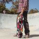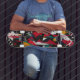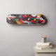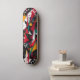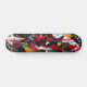 This skateboard deck displays a striking geometric abstract style with bold shapes and vibrant colours like red, yellow, and teal. Ideal for skaters who love high-energy, artistic designs, this unisex deck brings an edgy, modern art vibe to every ride.