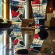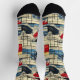 Dive into style with these dynamic abstract socks featuring a bold combination of ocean-inspired waves and geometric patterns. Vibrant shades of navy, red, and gold on a cream background create a striking and artistic design. Perfect for those who love unique and creative fashion, these socks add a modern and adventurous flair to any outfit, making them a standout accessory for casual or formal looks.
