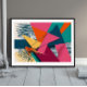 A striking abstract composition of sharp angles, bold textures, and energetic colour contrasts. This geometric artwork explodes with fuchsia, mustard yellow, teal, navy, and coral tones layered with expressive lines and textural elements. Perfect for modern interiors that crave a sense of motion, vibrance, and edgy creativity.