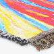 A quality printed throw has its advantages. This is a much finer weave throw than its loopier cousins, and though lighter, it is worth the investment for custom room accessorizing. The back is much prettier than the typical brown, and the fringe on the long sides very vivid, the selvage nicely done. Before photographing, I washed the throw in cold water, delicate, with a thicker woven throw the same size. On tumble dry low, this throw was dry in half the time as the other. This is a very practical quality if you use throws for furniture covers or to wrap up in frequently. The sleekness of the fabric makes it a great layer for accenting or protecting without the feeling of sitting on too much stuff. Perfect for napping or when you feel a light chill coming on. The color printing is beautiful and on this fabric, matched the design and color of my Photoshop image. This is an advantage for blending room fabrics and colors. The fringe on the short sides prints the colors from the design image and therefore varies from the side fringe. I streaked a white fractal line through the plaid pattern to give the illusion of weaving. This printed as crisp as an illusory thread, and put some white in the short side fringe, showing another advantage of print vs loomed- for artistic purposes, line lines, detail, and color integrity can be planned and preserved. My loomed throws have color limitations and more of a needlepoint texture. Print throws reproduce an exact image. The throw felt a little stiff straight out of the package, but this went away in the first delicate wash. Of course I searched the wash water for ink or bleeding and there was none.