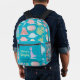Colourful dinosaurs adorn this backpack in a fun pattern that children will love. There’s an additional pouch on the front of the backpack, that can be personalised with a name.