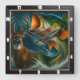 This square wall clock presents a vivid, action-packed scene of a majestic deer standing in water while a massive bass leaps dramatically towards it. The detailed artwork captures the raw energy of nature, making it an engaging and unique decorative piece for any outdoor enthusiast's home, cabin, or office.