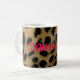 Mug with hot pink words "Dynamic Diva" on leopard print background