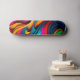 Immerse yourself in the vibrant energy of 'Dynamic Rhythms on Wheels,' an exhilarating abstract masterpiece that captures the essence of movement and freedom. A kaleidoscope of colors – from the sunlit yellows to the fiery reds, tranquil blues, and the warmth of orange – dance and intertwine, creating a symphony of hues that mirror the spirited flow of waves on a skateboard plate.