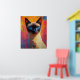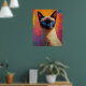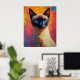 This piece captures a serene Siamese cat surrounded by a burst of wildflowers, set against a glowing orange-yellow sky. The expressive brushstrokes and vivid palette evoke a dreamlike world where nature and elegance meet. Inspired by the beauty of contrast and emotion, this artwork celebrates the harmony between calm and color.