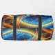 This duffle bag features a vibrant and dynamic design centred around a soccer ball in motion. The background is a rich dark blue, from which emanate streaks of glowing light in fiery oranges, reds, and bright blues, suggesting speed and energy. Stars and abstract light trails further enhance the sense of movement and excitement. The soccer ball itself is depicted with realistic shading, appearing to be in mid-flight or at the centre of this energetic display. The bag has practical black handles and a mesh side pocket.