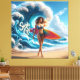 Dynamic Surfer Girl Walking Beach Waves Art Canvas Print