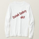 I love this shirt. I had written to the artist asking her if this picture was available on a shirt, and she wrote me back telling me where I could find the shirt. These shirts can be custom made to have a different saying. I loved this saying and went with it. The artist wrote me back later to tell me that she had seen my order go through. How's that for service? Pretty special. It's just as displayed. Perfect!