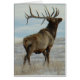 Bull Elk Lucky 13 Bull Card. This huge old bull elk sporting thirteen points on his massive rack is coming to the end of his "prime" years but still cuts an intimidating figure as he struts proudly over the snowy plains.
