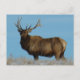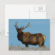 Bull Elk Sky Lined Postcard. A big beautiful bull elk surveys his surroundings from a hill top on the Southern Alberta prairies under a perfect blue winter sky.