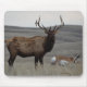 Bull Elk and Pronghorn Antelope Mouse Pad. A very rare sight, a big bull elk and a big pronghorn antelope close enough to get in the photo.