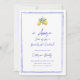 Introducing our stunning bachelorette party invitation for the ultimate Italy destination celebration! This invitation features elegant blue calligraphy, perfectly paired with a small lemon branch illustration, creating a sophisticated and chic design. The backside of the invitation is inspired by classic Italian blue tiles, adding an extra touch of elegance and transporting you straight to the picturesque streets of Italy.